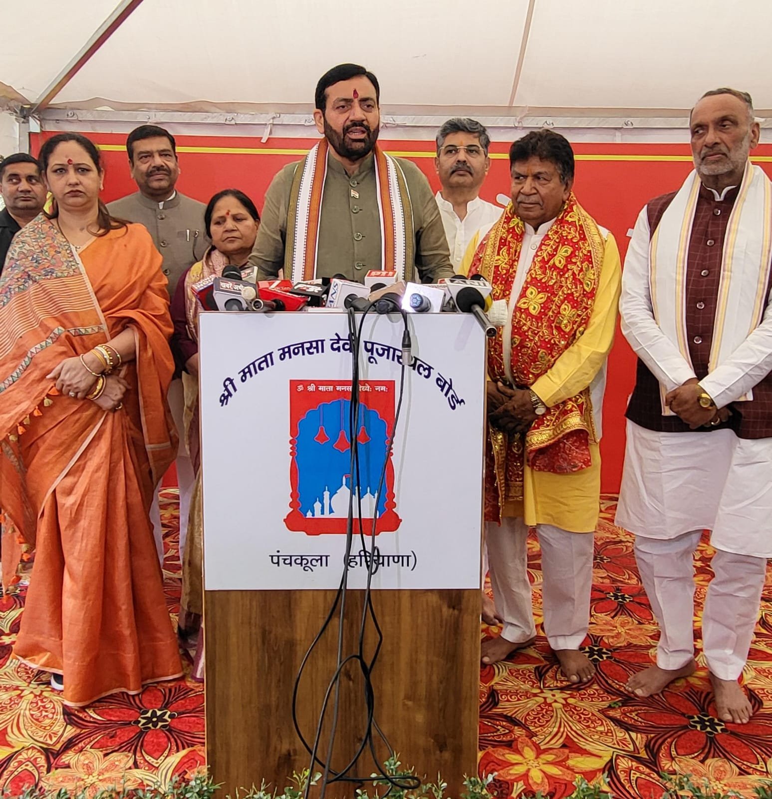 चैत्र नवरात्रि के पावन अवसर पर पंचकूला स्थित श्री माता मनसा देवी मंदिर में एक भव्य धार्मिक एवं सामाजिक कार्यक्रम का आयोजन किया गया। इस अवसर पर हरियाणा के माननीय मुख्यमंत्री श्री नायब सिंह सैनी जी एवं उनकी धर्मपत्नी सुमन सैनी जी ने माता रानी के चरणों में शीश नवाकर प्रदेश की सुख-समृद्धि एवं जनकल्याण की कामना की।