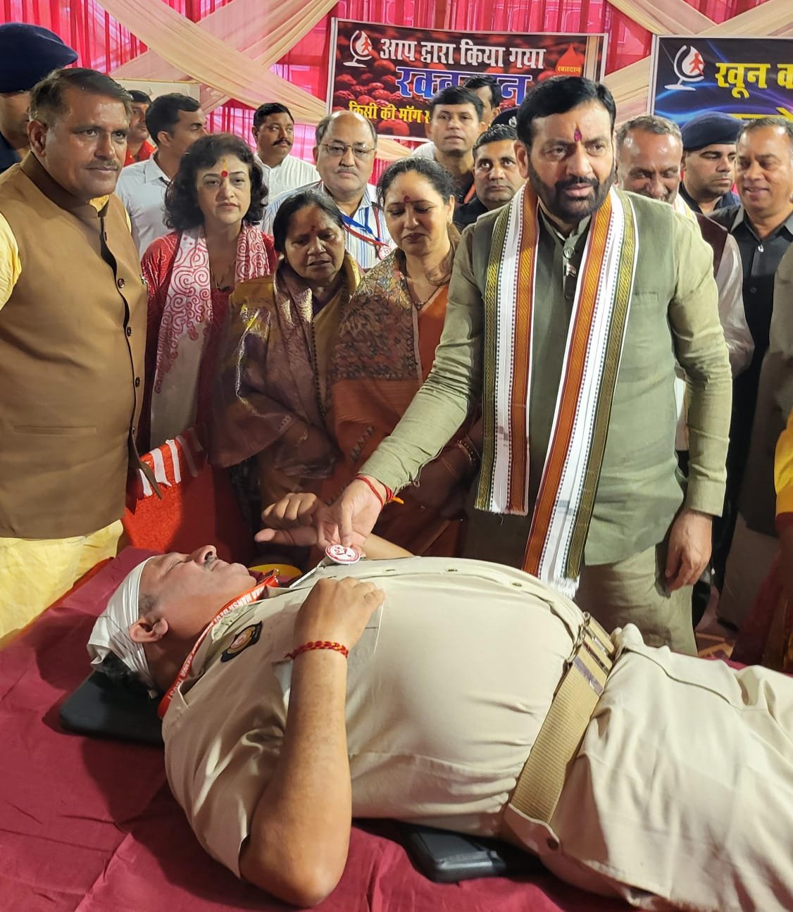 इसके उपरांत मुख्यमंत्री जी ने मंदिर में विधि-विधान से पूजा-अर्चना की तथा यज्ञ-हवन में भाग लिया। साथ ही उन्होंने रक्तदान शिविर में शिरकत कर “रक्त वीरों” को सम्मानित किया और समाज में रक्तदान के प्रति जागरूकता बढ़ाने का आह्वान किया।