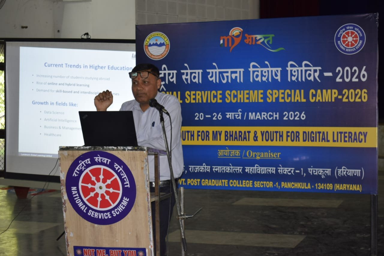 सात दिवसीय विशेष एनएसएस शिविर का तीसरा दिन रविवार को सेक्टर-1 स्थित गवर्नमेंट पोस्ट ग्रेजुएट कॉलेज के पार्क में उत्साह, ऊर्जा और प्रेरणा के साथ मनाया गया। प्राचार्य डॉ. शैलजा छाबड़ा के संरक्षण और कार्यक्रम अधिकारी डॉ. अनिल कुमार पाण्डेय के मार्गदर्शन में, एनएसएस स्वयंसेवकों ने स्वयं ही पार्क का निर्माण किया और कुल 202 पौधे लगाए। इनमें नीम, जामुन, शहतूत, मोरिंगा, गुड़हल, शीशम, आम और कनेर जैसे फूलदार और छायादार पौधे शामिल थे।